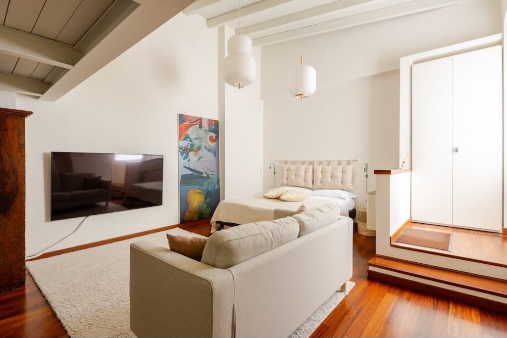 La casa di trova a pochi metri da Palazzo Trecchi. La vicinanza al palazzo la rende ideale per chi partecipa a corsi e convegni. Da un piccolo ballatoio privato si accede all’accogliente e spazioso open space con letto matrimoniale. La moderna cucina è dotata di forno, lavastoviglie, lavatrice, macchina per il caffè, bollitore. Il bagno e il terzo letto si trovano sul soppalco.
